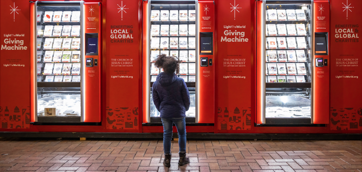 The Giving Machines provide a family-friendly, fun and easy way to help our community’s most vulnerable. The large, red “vending machines” work in reverse, creating a memorable way to give to those in need during the Christmas season with a simple swipe of a credit card amid holiday festivities.